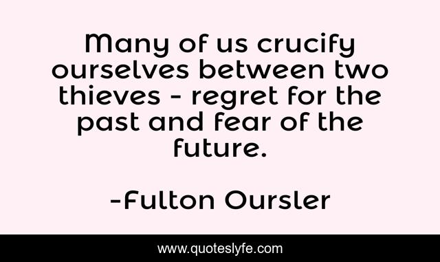 Many of us crucify ourselves between two thieves - regret for the past and fear of the future.