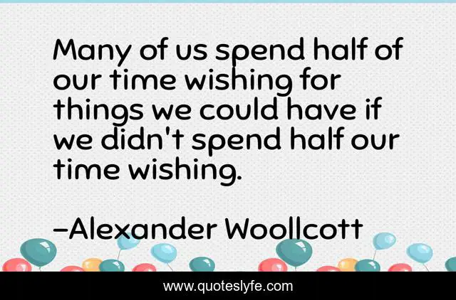 This page presents the quote "Many of us spend half of our time wishing for things we could have if we didn't spend half our time wishing.". Author of this quote is Alexander Woollcott. This quote is about time, spend, half,.