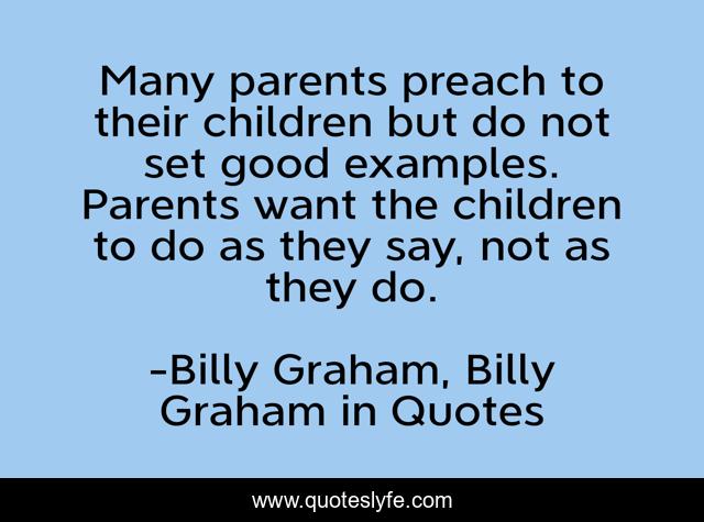 This page presents the quote "Many parents preach to their children but do not set good examples. Parents want the children to do as they say, not as they do.". Author of this quote is Billy Graham, Billy Graham in Quotes. This quote is about parents, billy-graham,.