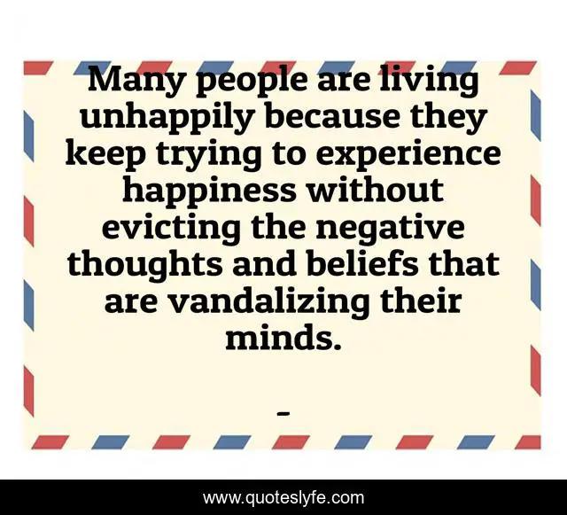 Many people are living unhappily because they keep trying to experience happiness without evicting the negative thoughts and beliefs that are vandalizing their minds.