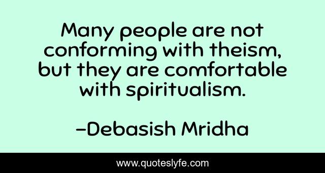 This page presents the quote "Many people are not conforming with theism, but they are comfortable with spiritualism.". Author of this quote is Debasish Mridha. This quote is about spiritualism, philosophy, debasish-mridha, conforming, quotes, theism, inspirational, enthusiasm, conformity,.