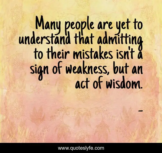 This page presents the quote "Many people are yet to understand that admitting to their mistakes isn't a sign of weakness, but an act of wisdom.". Author of this quote is . This quote is about being-wise, edmond-mbiaka, fault, amitting-to-mistakes, mistakes, an-act-of-wisdom, a-sign-of-weakness, mistake,.