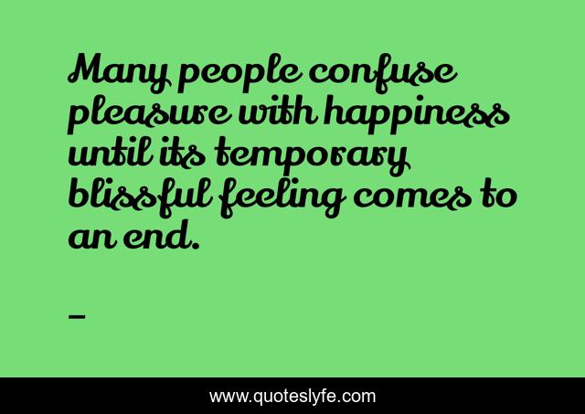 This page presents the quote "Many people confuse pleasure with happiness until its temporary blissful feeling comes to an end.". Author of this quote is . This quote is about edmond-mbiaka, pleasure, blissful-feeling, happiness, pleasure-is-temporary,.