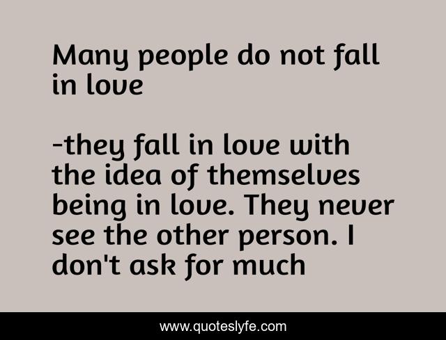 "they fall in love with the idea of themselves being in love. They never see the other person. I don't ask for much Quotes." Quoteslyfe.com, 2025. Mon. 08 Dec. 2025. <https://www.quoteslyfe.com/quote/Many-people-do-not-fall-in-love-245398>.