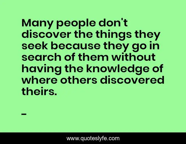 This page presents the quote "Many people don't discover the things they seek because they go in search of them without having the knowledge of where others discovered theirs.". Author of this quote is . This quote is about edmond-mbiaka, finding-what-you-seek, seek-at-the-right-places, discover-what-you-seek, knowing-where-to-search,.