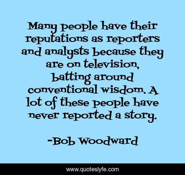 This page presents the quote "Many people have their reputations as reporters and analysts because they are on television, batting around conventional wisdom. A lot of these people have never reported a story.". Author of this quote is Bob Woodward. This quote is about television, story, people,.
