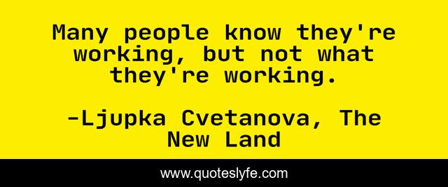 "Ljupka Cvetanova, The New Land Quotes." Quoteslyfe.com, 2025. Sat. 06 Dec. 2025. <https://www.quoteslyfe.com/quote/Many-people-know-they-re-working-but-31427>.