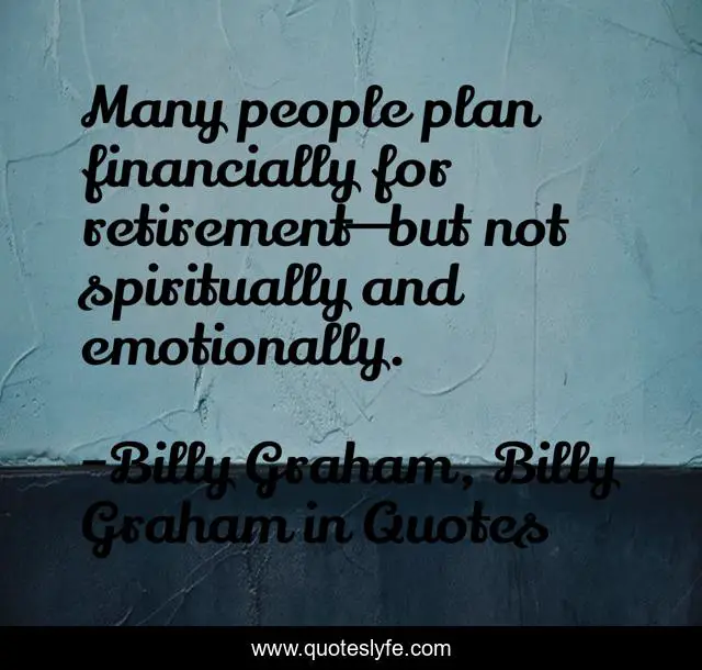 This page presents the quote "Many people plan financially for retirement—but not spiritually and emotionally.". Author of this quote is Billy Graham, Billy Graham in Quotes. This quote is about age, billy-graham,.