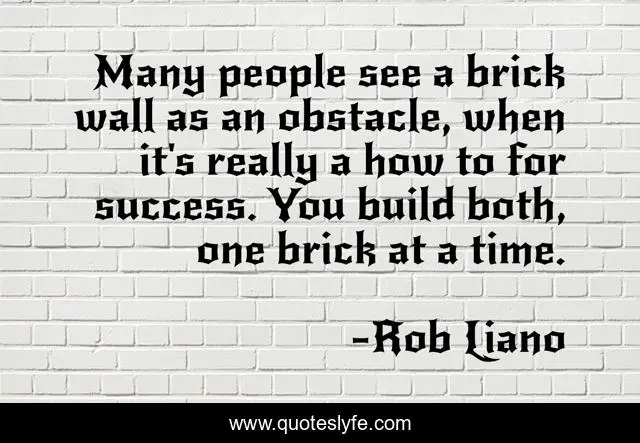 This page presents the quote "Many people see a brick wall as an obstacle, when it's really a how to for success. You build both, one brick at a time.". Author of this quote is Rob Liano. This quote is about motivation, love, hard-work, obstacles, overcoming, steps, build, success-steps, inspiration,.