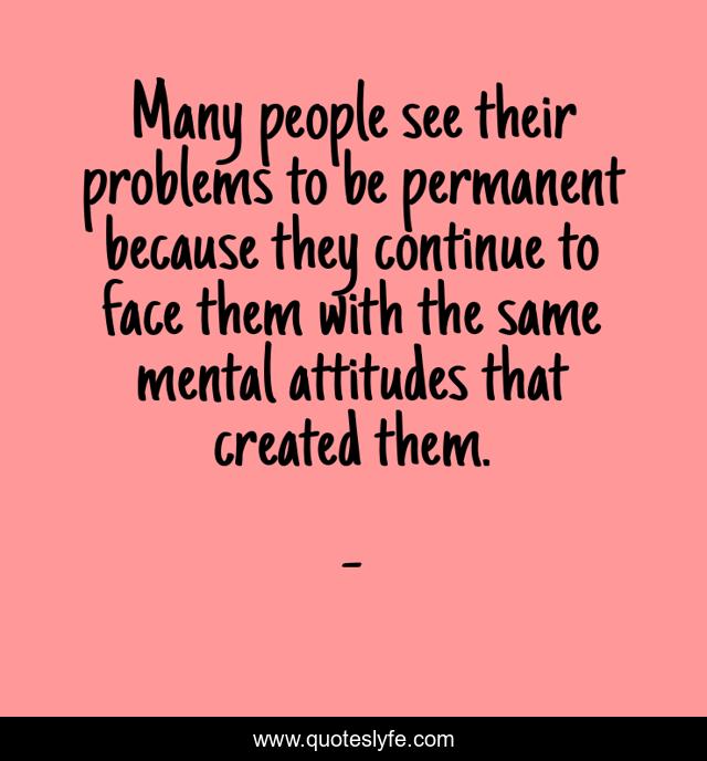 This page presents the quote "Many people see their problems to be permanent because they continue to face them with the same mental attitudes that created them.". Author of this quote is . This quote is about edmond-mbiaka, problems, face-your-problems, behaviour, attitude, facing-your-problems, mental-attitudes, permanent-problems,.