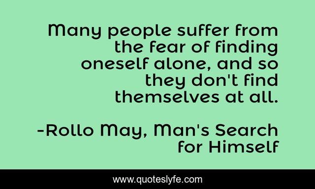 This page presents the quote "Many people suffer from the fear of finding oneself alone, and so they don't find themselves at all.". Author of this quote is Rollo May, Man's Search for Himself. This quote is about introspection, solitude,.