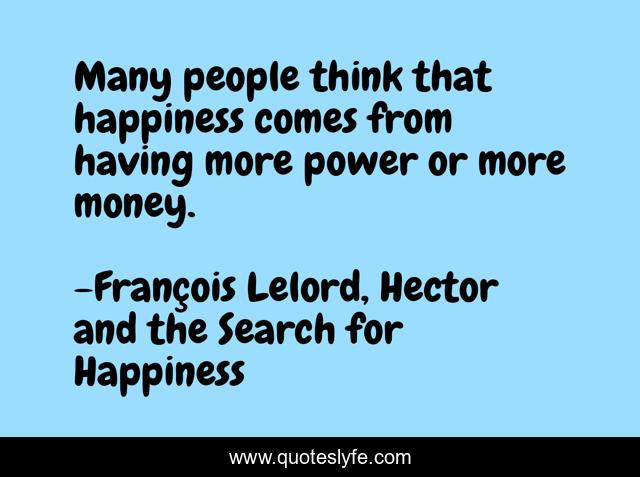 This page presents the quote "Many people think that happiness comes from having more power or more money.". Author of this quote is François Lelord, Hector and the Search for Happiness. .