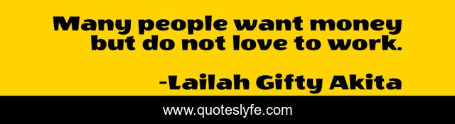 This page presents the quote "Many people want money but do not love to work.". Author of this quote is Lailah Gifty Akita. This quote is about confidence, motivational, people, money, work, job, optimistic, positive,.