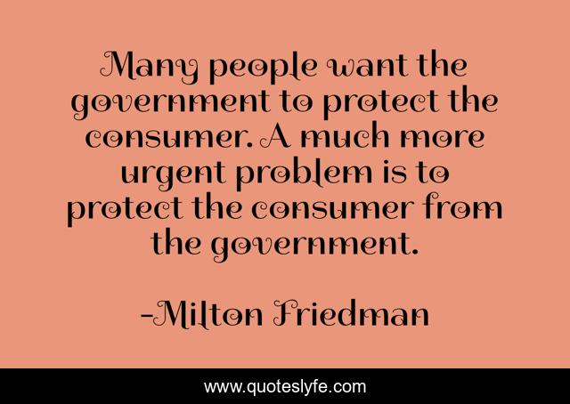 This page presents the quote "Many people want the government to protect the consumer. A much more urgent problem is to protect the consumer from the government.". Author of this quote is Milton Friedman. This quote is about problem, people,.