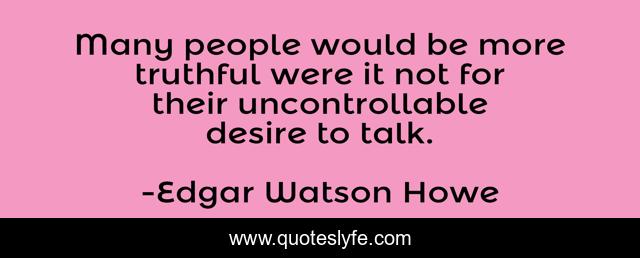 This page presents the quote "Many people would be more truthful were it not for their uncontrollable desire to talk.". Author of this quote is Edgar Watson Howe. .