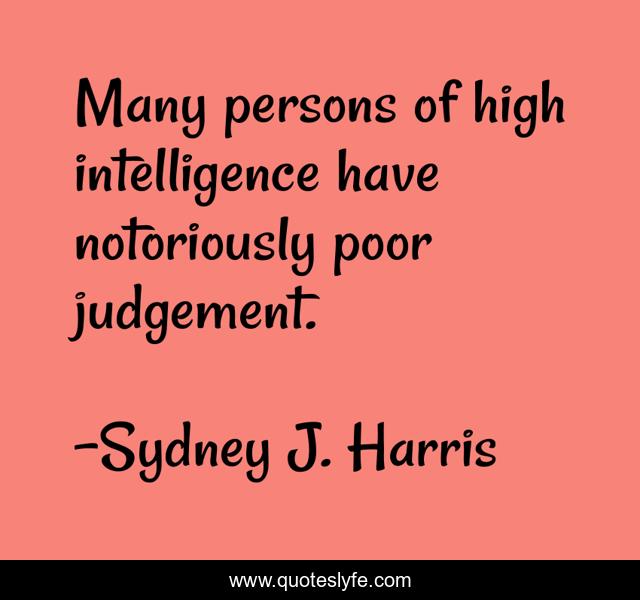 This page presents the quote "Many persons of high intelligence have notoriously poor judgement.". Author of this quote is Sydney J. Harris. .
