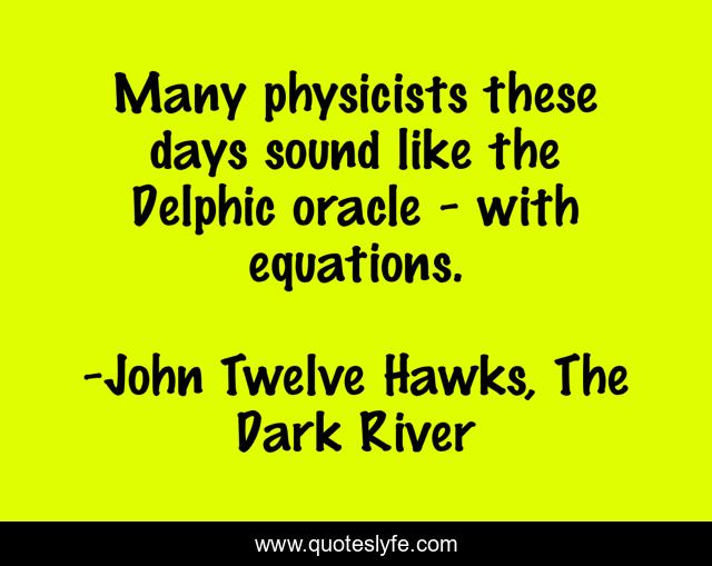 This page presents the quote "Many physicists these days sound like the Delphic oracle - with equations.". Author of this quote is John Twelve Hawks, The Dark River. This quote is about science, physics, oracles, john-twelve-hawks,.