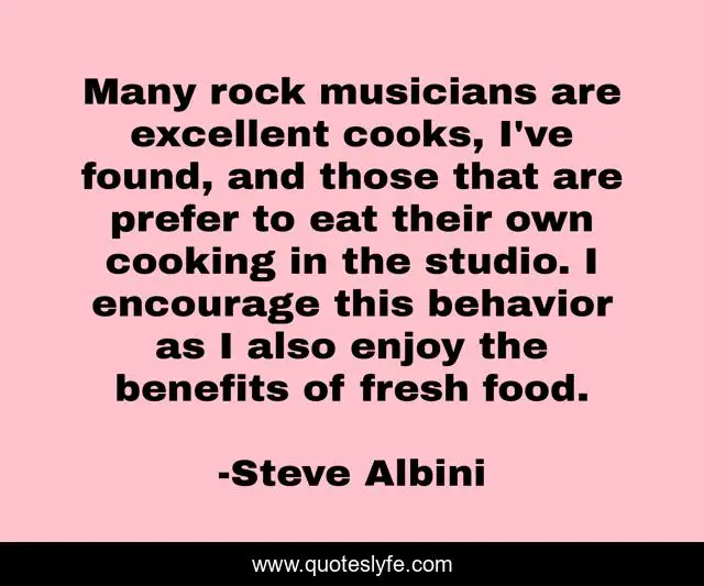 This page presents the quote "Many rock musicians are excellent cooks, I've found, and those that are prefer to eat their own cooking in the studio. I encourage this behavior as I also enjoy the benefits of fresh food.". Author of this quote is Steve Albini. This quote is about cooking, behavior, musicians,.