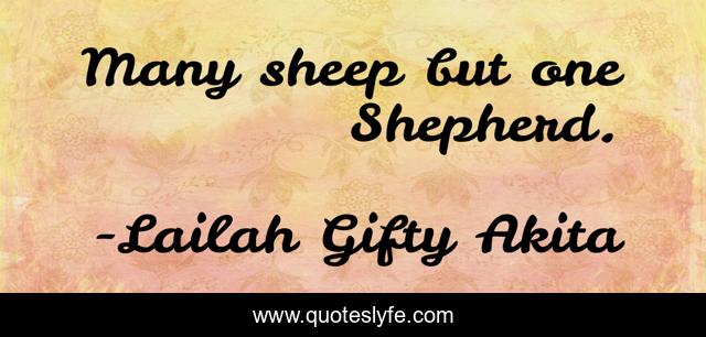 This page presents the quote "Many sheep but one Shepherd.". Author of this quote is Lailah Gifty Akita. This quote is about sheep, science, shepherd, wise-sayings,.