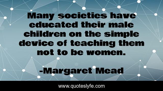 This page presents the quote "Many societies have educated their male children on the simple device of teaching them not to be women.". Author of this quote is Margaret Mead. This quote is about simple, educated, children,.