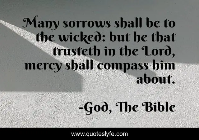 This page presents the quote "Many sorrows shall be to the wicked: but he that trusteth in the Lord, mercy shall compass him about.". Author of this quote is God, The Bible. This quote is about faith, psalm-32-10, peace, christian, christianity,.