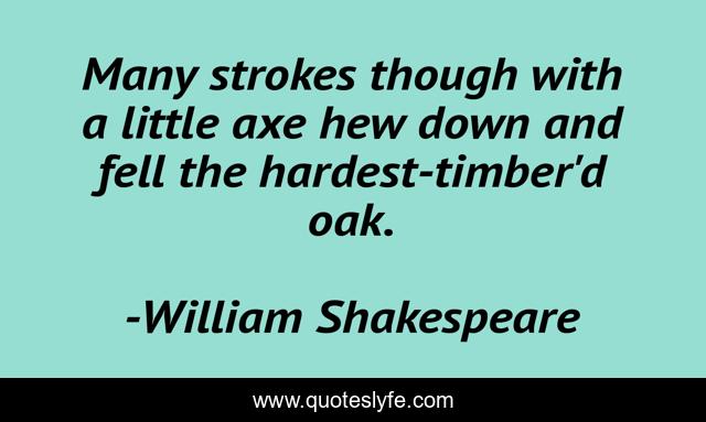 "William Shakespeare Quotes." Quoteslyfe.com, 2025. Fri. 05 Dec. 2025. <https://www.quoteslyfe.com/quote/Many-strokes-though-with-a-little-axe-278012>.