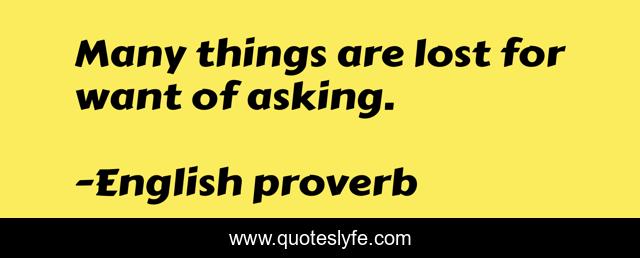 This page presents the quote "Many things are lost for want of asking.". Author of this quote is English proverb. .