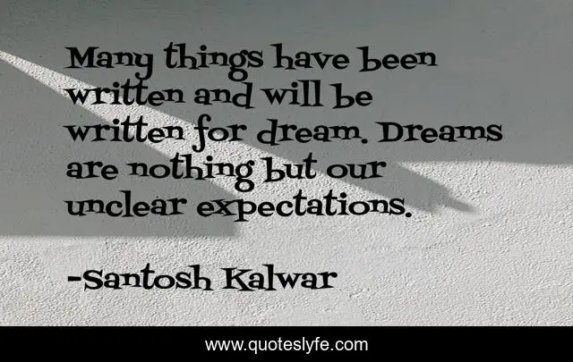 This page presents the quote "Many things have been written and will be written for dream. Dreams are nothing but our unclear expectations.". Author of this quote is Santosh Kalwar. This quote is about things, written, dream, expectations,.
