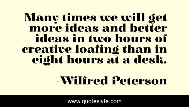 This page presents the quote "Many times we will get more ideas and better ideas in two hours of creative loafing than in eight hours at a desk.". Author of this quote is Wilfred Peterson. .