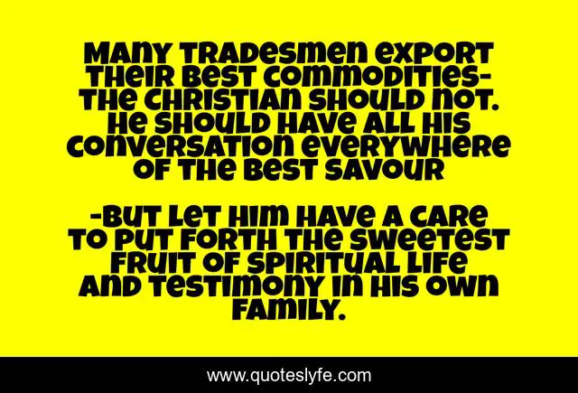 "but let him have a care to put forth the sweetest fruit of spiritual life and testimony in his own family. Quotes." Quoteslyfe.com, 2025. Sat. 06 Dec. 2025. <https://www.quoteslyfe.com/quote/Many-tradesmen-export-their-best-commodities-the-77170>.