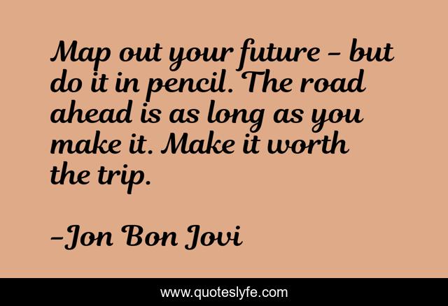 This page presents the quote "Map out your future - but do it in pencil. The road ahead is as long as you make it. Make it worth the trip.". Author of this quote is Jon Bon Jovi. This quote is about road, long,.