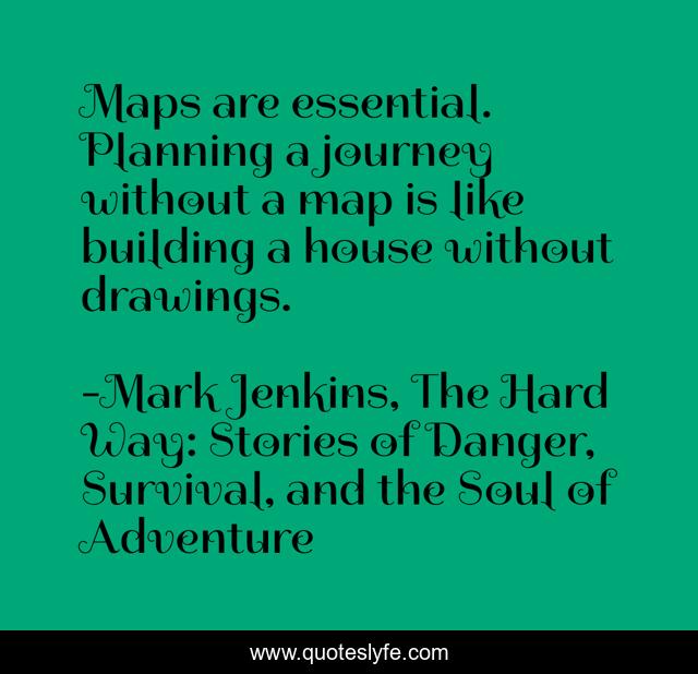 "Mark Jenkins, The Hard Way: Stories of Danger, Survival, and the Soul of Adventure Quotes." Quoteslyfe.com, 2025. Fri. 05 Dec. 2025. <https://www.quoteslyfe.com/quote/Maps-are-essential-Planning-a-journey-without-137598>.