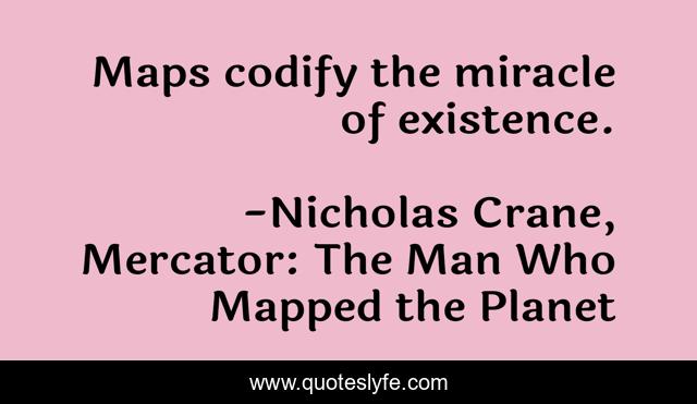 "Nicholas Crane, Mercator: The Man Who Mapped the Planet Quotes." Quoteslyfe.com, 2025. Fri. 05 Dec. 2025. <https://www.quoteslyfe.com/quote/Maps-codify-the-miracle-of-existence-190592>.