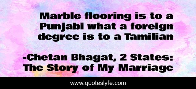 "Chetan Bhagat, 2 States: The Story of My Marriage Quotes." Quoteslyfe.com, 2025. Fri. 05 Dec. 2025. <https://www.quoteslyfe.com/quote/Marble-flooring-is-to-a-Punjabi-what-249202>.