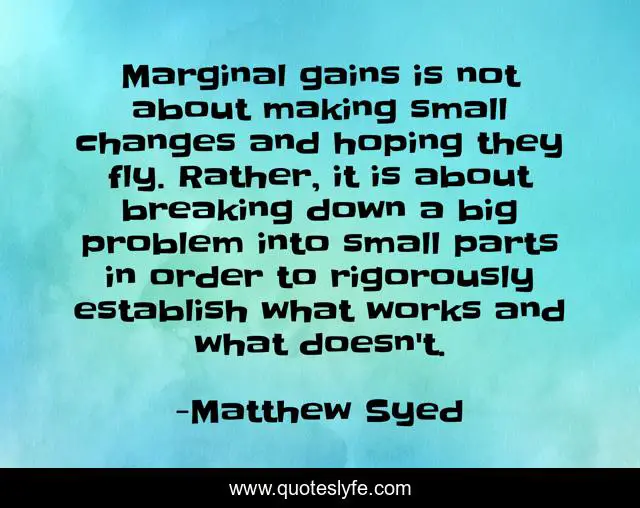 "Matthew Syed Quotes." Quoteslyfe.com, 2025. Fri. 05 Dec. 2025. <https://www.quoteslyfe.com/quote/Marginal-gains-is-not-about-making-small-204146>.