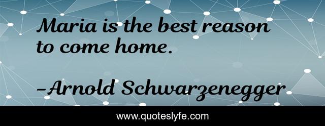 This page presents the quote "Maria is the best reason to come home.". Author of this quote is Arnold Schwarzenegger. This quote is about home, reason, come,.