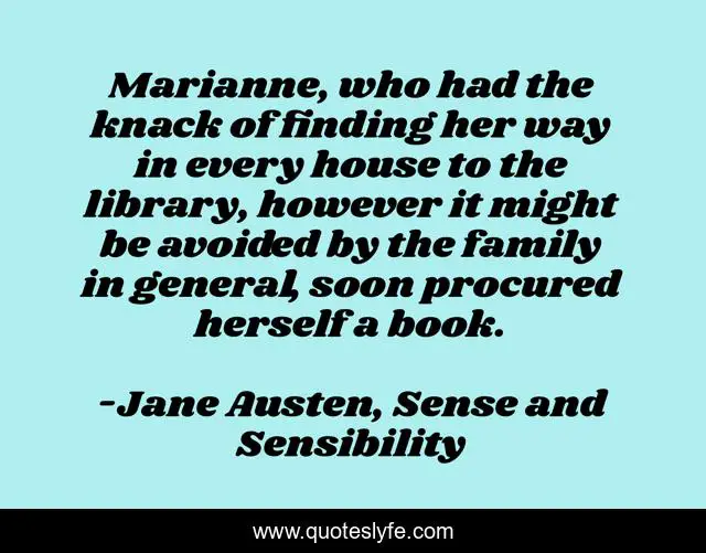 This page presents the quote "Marianne, who had the knack of finding her way in every house to the library, however it might be avoided by the family in general, soon procured herself a book.". Author of this quote is Jane Austen, Sense and Sensibility. This quote is about books, reading, library,.