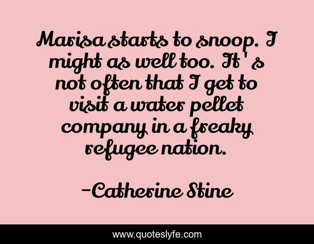 This page presents the quote "Marisa starts to snoop. I might as well too. It's not often that I get to visit a water pellet company in a freaky refugee nation.". Author of this quote is Catherine Stine. This quote is about ya-scifi, thriller,.