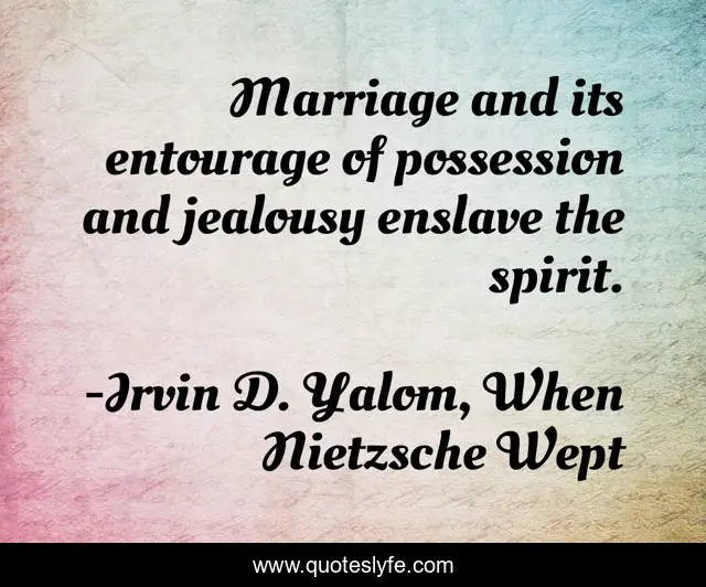 "Irvin D. Yalom, When Nietzsche Wept Quotes." Quoteslyfe.com, 2025. Sun. 07 Dec. 2025. <https://www.quoteslyfe.com/quote/Marriage-and-its-entourage-of-possession-and-76647>.