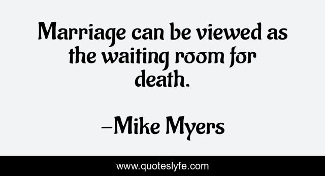 This page presents the quote "Marriage can be viewed as the waiting room for death.". Author of this quote is Mike Myers. This quote is about waiting, death, room,.