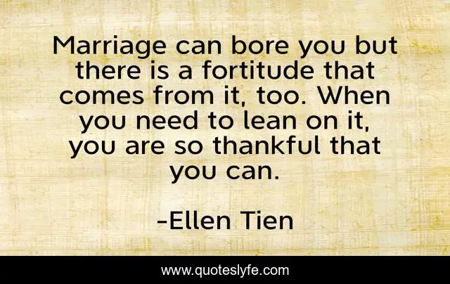 This page presents the quote "Marriage can bore you but there is a fortitude that comes from it, too. When you need to lean on it, you are so thankful that you can.". Author of this quote is Ellen Tien. This quote is about marriage, married-life,.