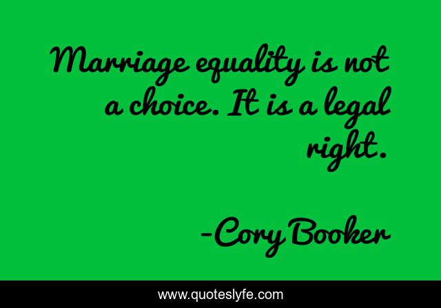 This page presents the quote "Marriage equality is not a choice. It is a legal right.". Author of this quote is Cory Booker. This quote is about marriage, legal, choice,.
