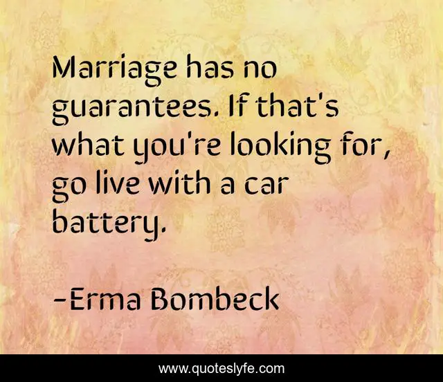 "Erma Bombeck Quotes." Quoteslyfe.com, 2025. Fri. 05 Dec. 2025. <https://www.quoteslyfe.com/quote/Marriage-has-no-guarantees-If-that-s-76560>.