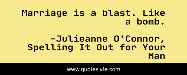 "Julieanne O'Connor, Spelling It Out for Your Man Quotes." Quoteslyfe.com, 2025. Fri. 05 Dec. 2025. <https://www.quoteslyfe.com/quote/Marriage-is-a-blast-Like-a-bomb-35825>.