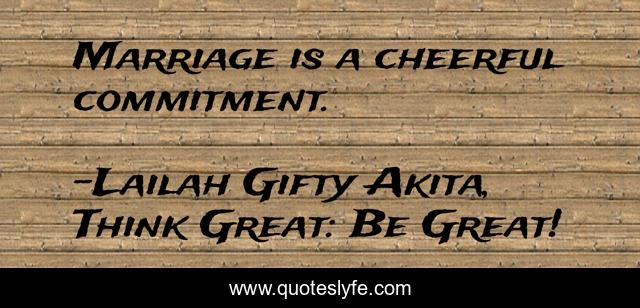 "Lailah Gifty Akita, Think Great: Be Great! Quotes." Quoteslyfe.com, 2025. Sun. 07 Dec. 2025. <https://www.quoteslyfe.com/quote/Marriage-is-a-cheerful-commitment-77253>.