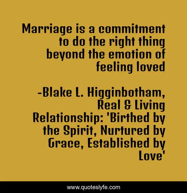 "Blake L. Higginbotham, Real & Living Relationship: 'Birthed by the Spirit, Nurtured by Grace, Established by Love' Quotes." Quoteslyfe.com, 2025. Sat. 06 Dec. 2025. <https://www.quoteslyfe.com/quote/Marriage-is-a-commitment-to-do-the-120505>.
