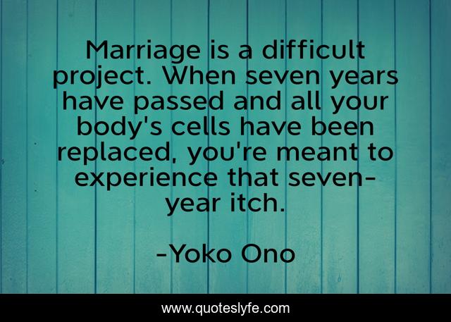 This page presents the quote "Marriage is a difficult project. When seven years have passed and all your body's cells have been replaced, you're meant to experience that seven-year itch.". Author of this quote is Yoko Ono. This quote is about body, experience,.