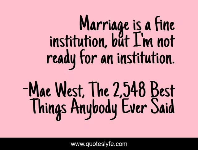 "Mae West, The 2,548 Best Things Anybody Ever Said Quotes." Quoteslyfe.com, 2025. Sat. 06 Dec. 2025. <https://www.quoteslyfe.com/quote/Marriage-is-a-fine-institution-but-I-54230>.