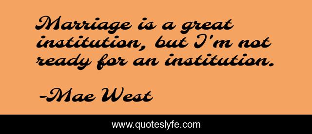 "Mae West Quotes." Quoteslyfe.com, 2025. Sun. 07 Dec. 2025. <https://www.quoteslyfe.com/quote/Marriage-is-a-great-institution-but-I-314898>.