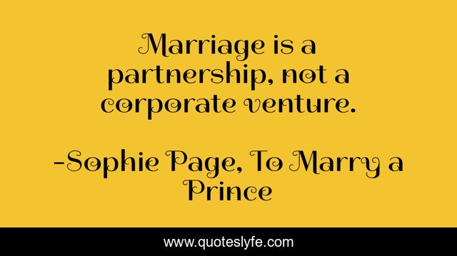 "Sophie Page, To Marry a Prince Quotes." Quoteslyfe.com, 2025. Mon. 08 Dec. 2025. <https://www.quoteslyfe.com/quote/Marriage-is-a-partnership-not-a-corporate-76768>.